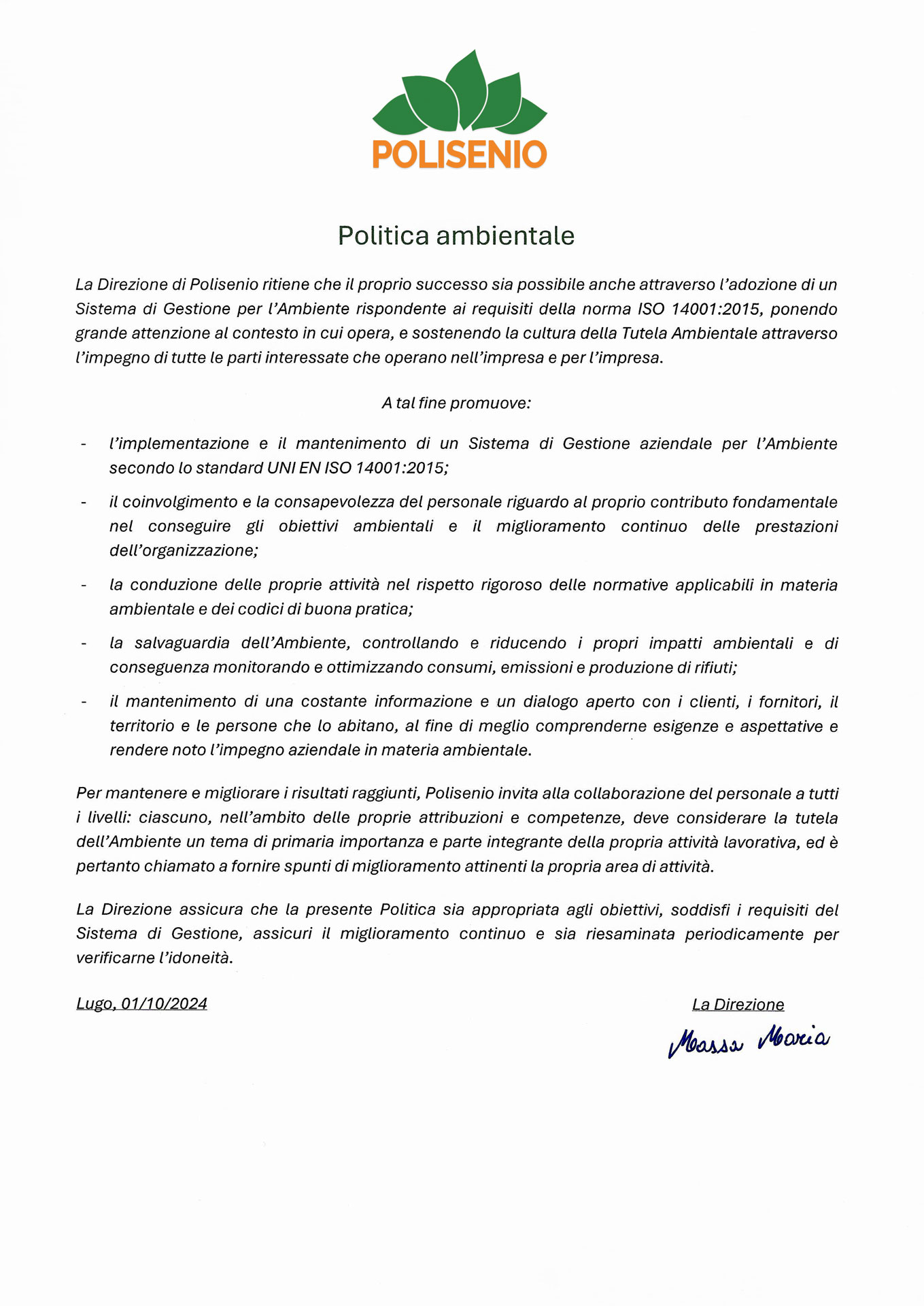 "Rispetto per l’ambiente e salute sono nostri obiettivi imprescindibili."